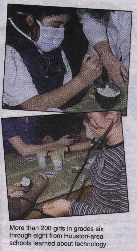 The conference turnout indicates that interest in these opportunities runs high. More than 200 girls from Houston-area schools spent the day taking apart computers, performing DNA tests, making dental molds, touching live oysters and doing other fun activities aimed at stimulating and supporting their interest in math and science.