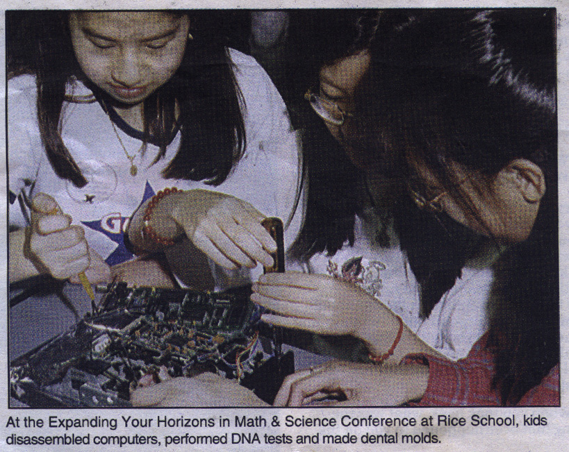 They listened to speakers like Campbell whose topics ranged from marine biology to computer science to forensic chemistry. Sponsored in part by the Center for Research on Parallel Computation (CRPC) and the West Harris County Branch of the American Association of University Women (AAUW), the one-day conference offered a host of workshops.