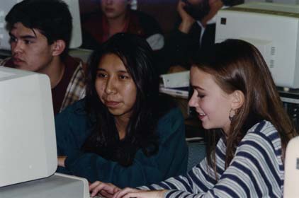 At a kickoff conference, students work on assignments designed to familiarize them with the computer hardware and software used during the Challenge year.